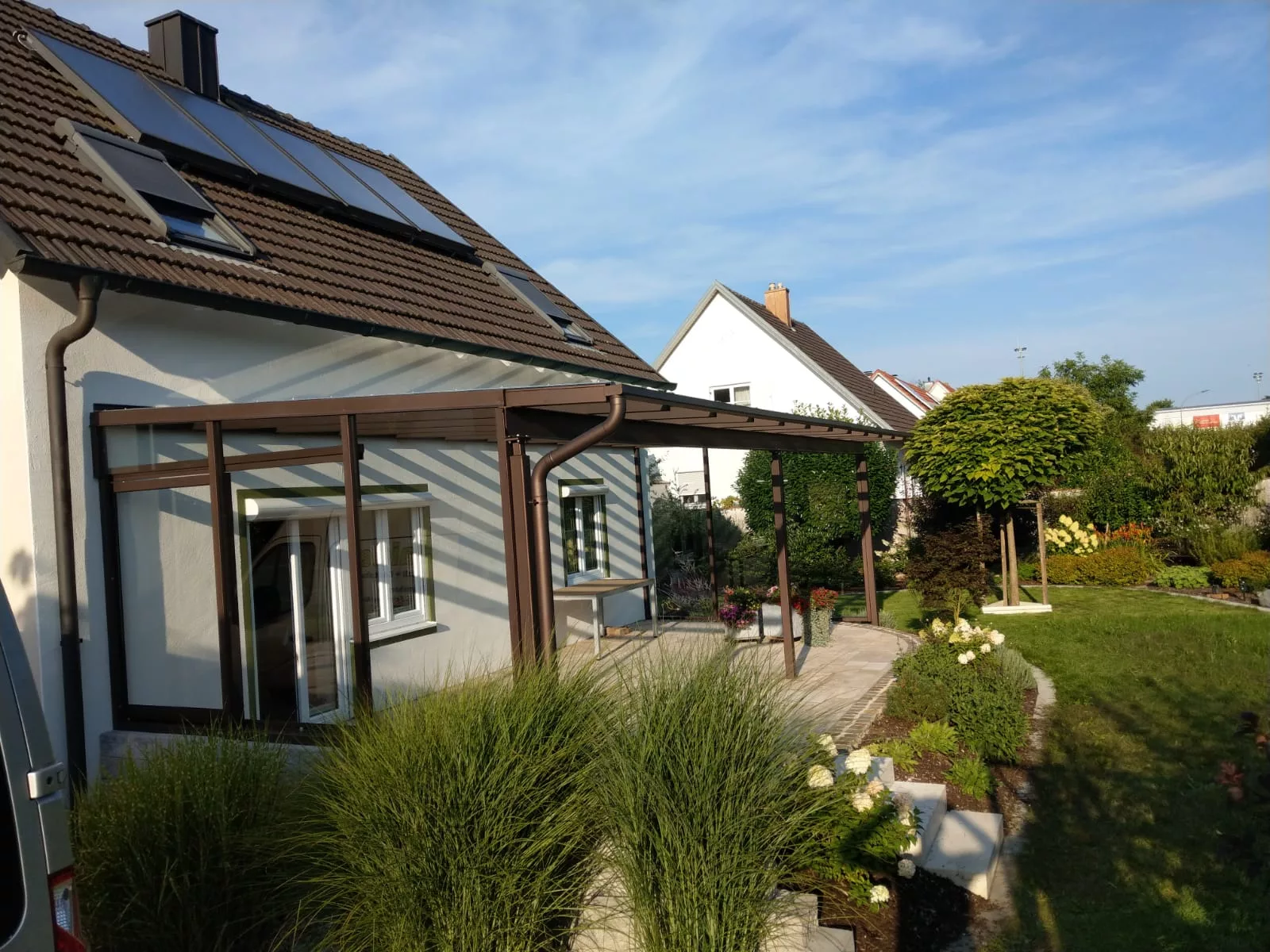 Montage einer Terrassenüberdachung in Altötting, mit Seitenverglasung und Schiebefenster